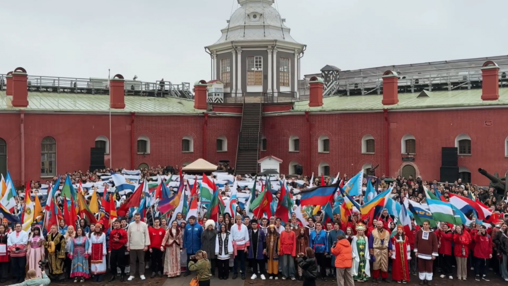 Это было яркое и мощное зрелище: участники в костюмах народов России и с флагами регионов страны символизировали многонациональное единство нашей Родины. Кульминацией мероприятия стало исполнение гимна России.